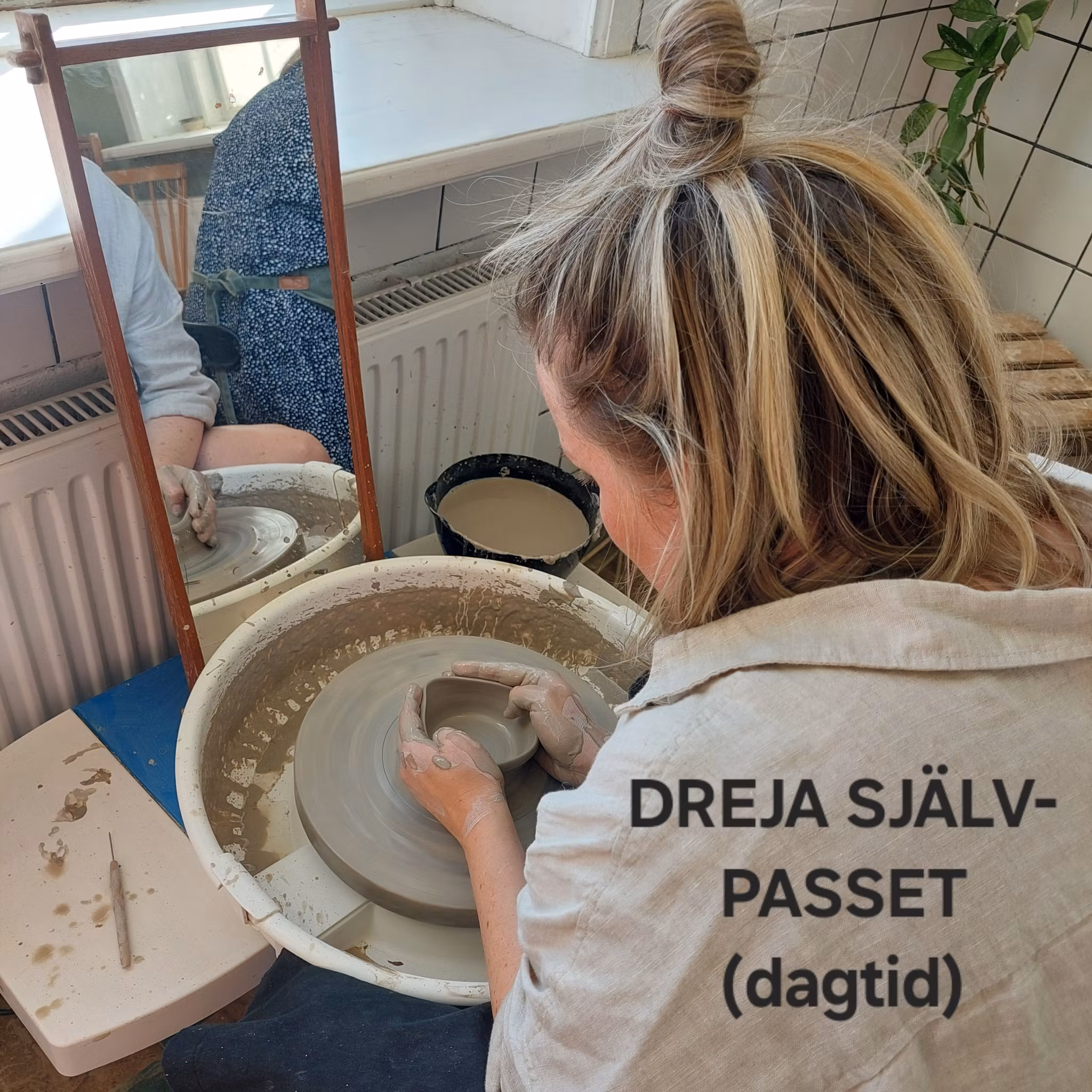 Tid: Välj mellan kl 10-12.30 och 13-15.30. Varav 2 h aktivt jobb kring drejning och sedan städning på slutet. Du ansvarar själv för att rengöra din drejskiva och använda redskap.