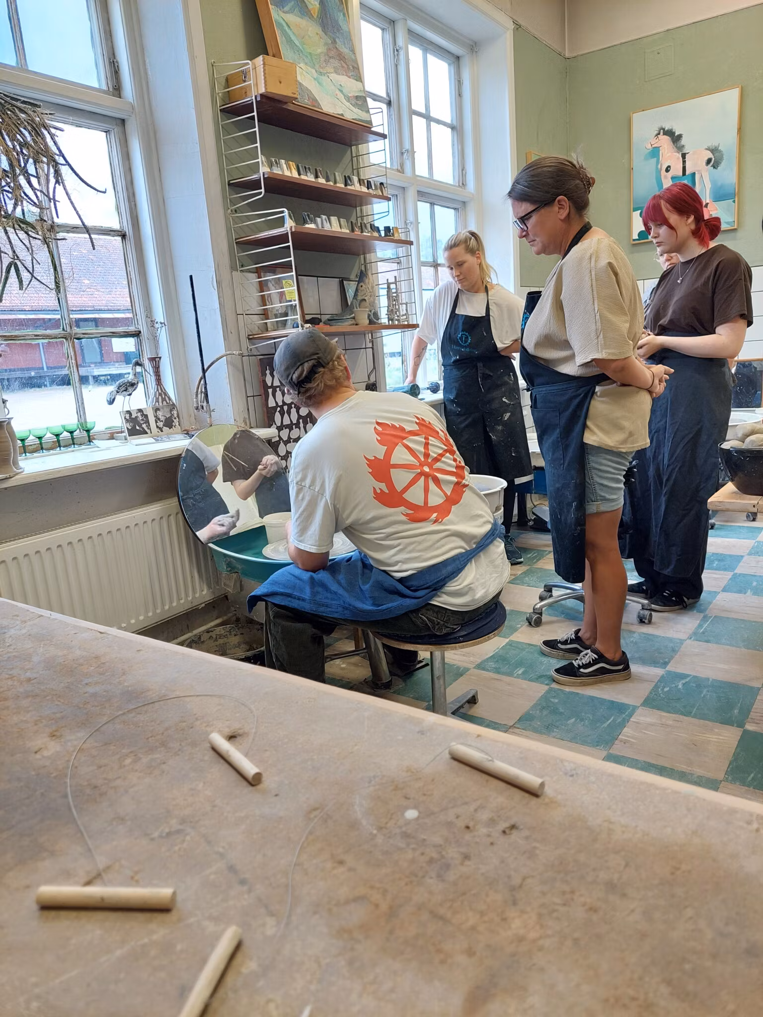 Första dagen kommer vi fokusera på att dreja eller handbygga de former man vill jobba med under söndagen. I verkstan har vi fyra drejskivor tillgängliga så om det är många som vill dreja kommer vi dela upp oss. Man kommer kunna jobba med olika tekninker bla. ringling, tummning, kavling och drejning. Vi kommer att ha en flytande paus i mitten där vi bjuder på nybakade frallor och kaffe, samt frukt.
